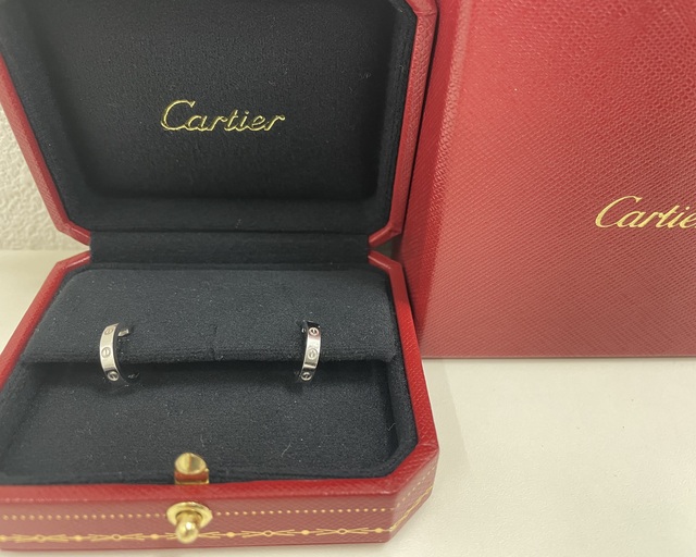 カルティエのラブシリーズはピアスやイヤリングのほかリングやネックレス、ブレスレット全て一目でカルティエ製品とわかる大人気シリーズですね♪