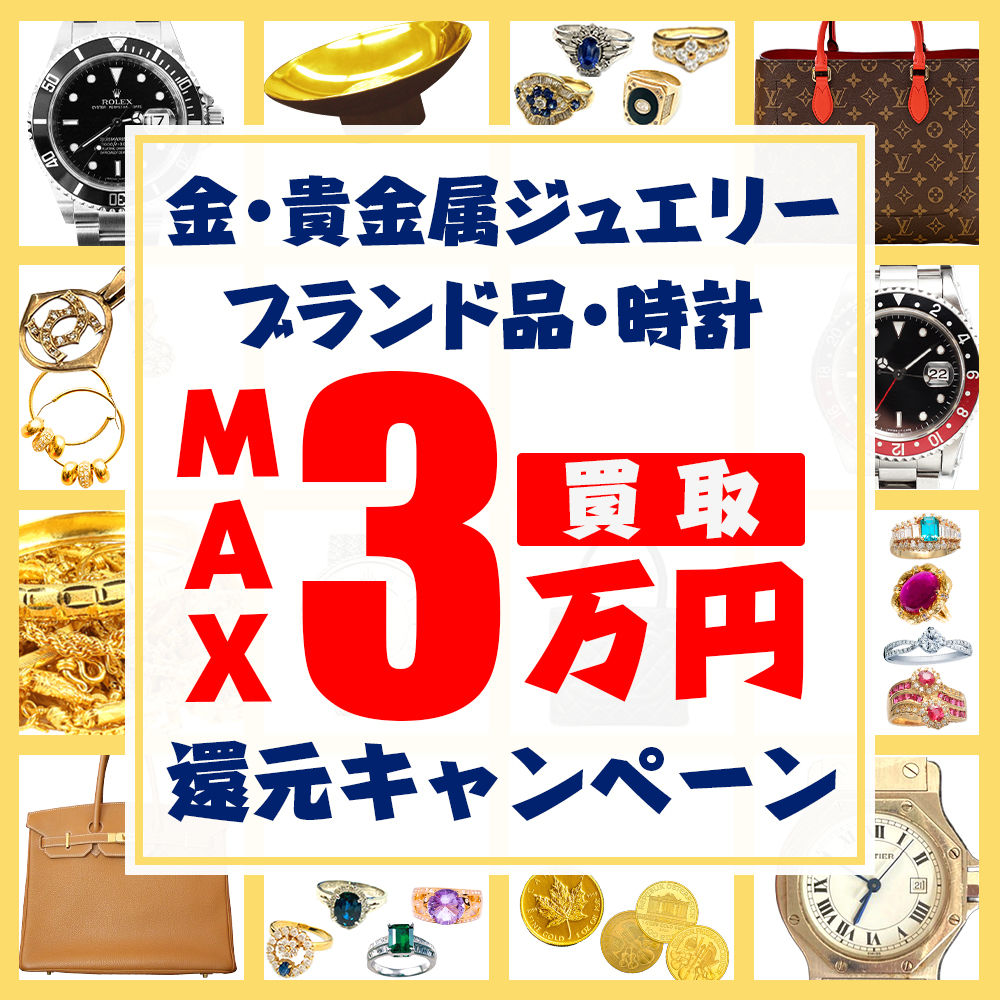 \開店1周年記念!/金・貴金属ジュエリー・ブランド品・時計の買取で!最大30,000円還元キャンペーン